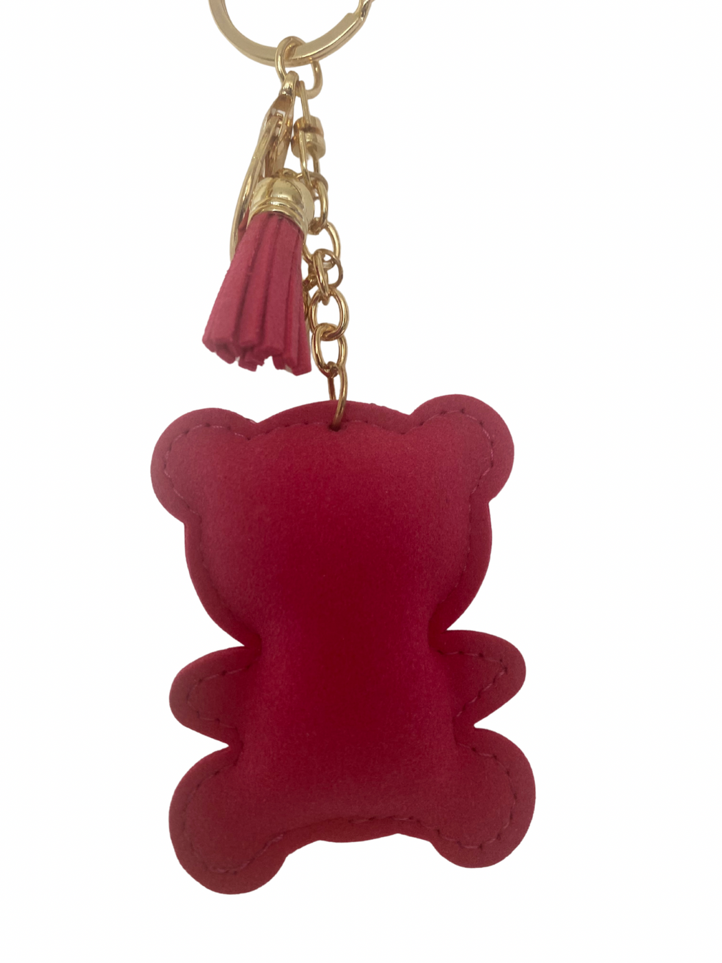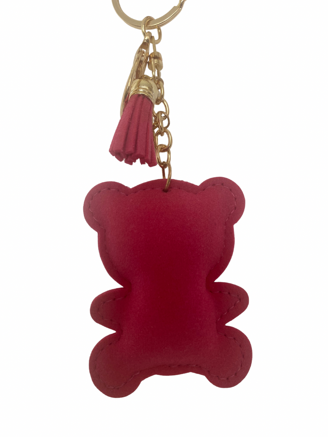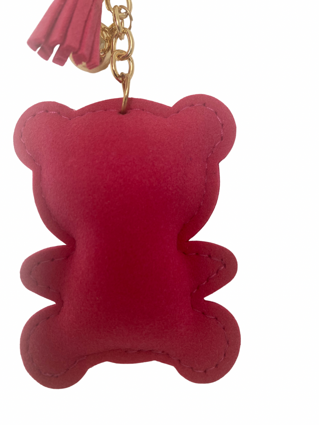 - Includes matching pink faux suede tassel charm