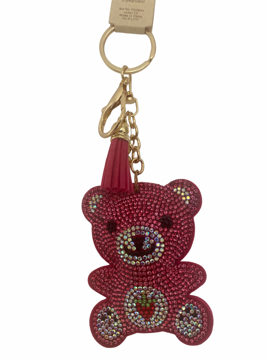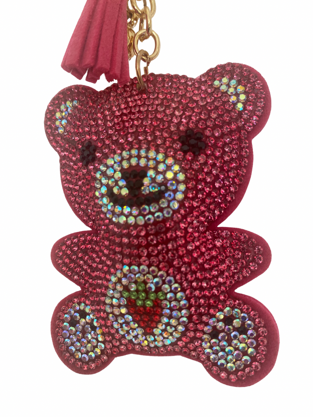 Pink Rhinestone Heart Keychain with Tassel – Gold Hardware
