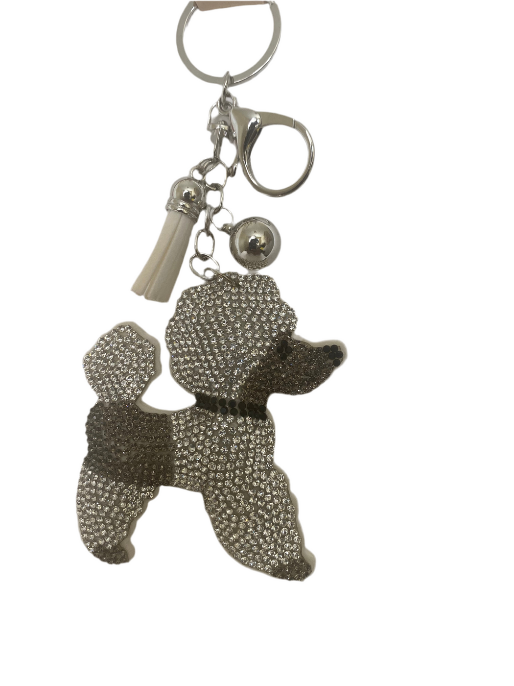 Sparkling Poodle Rhinestone Keychain with Tassel Charm